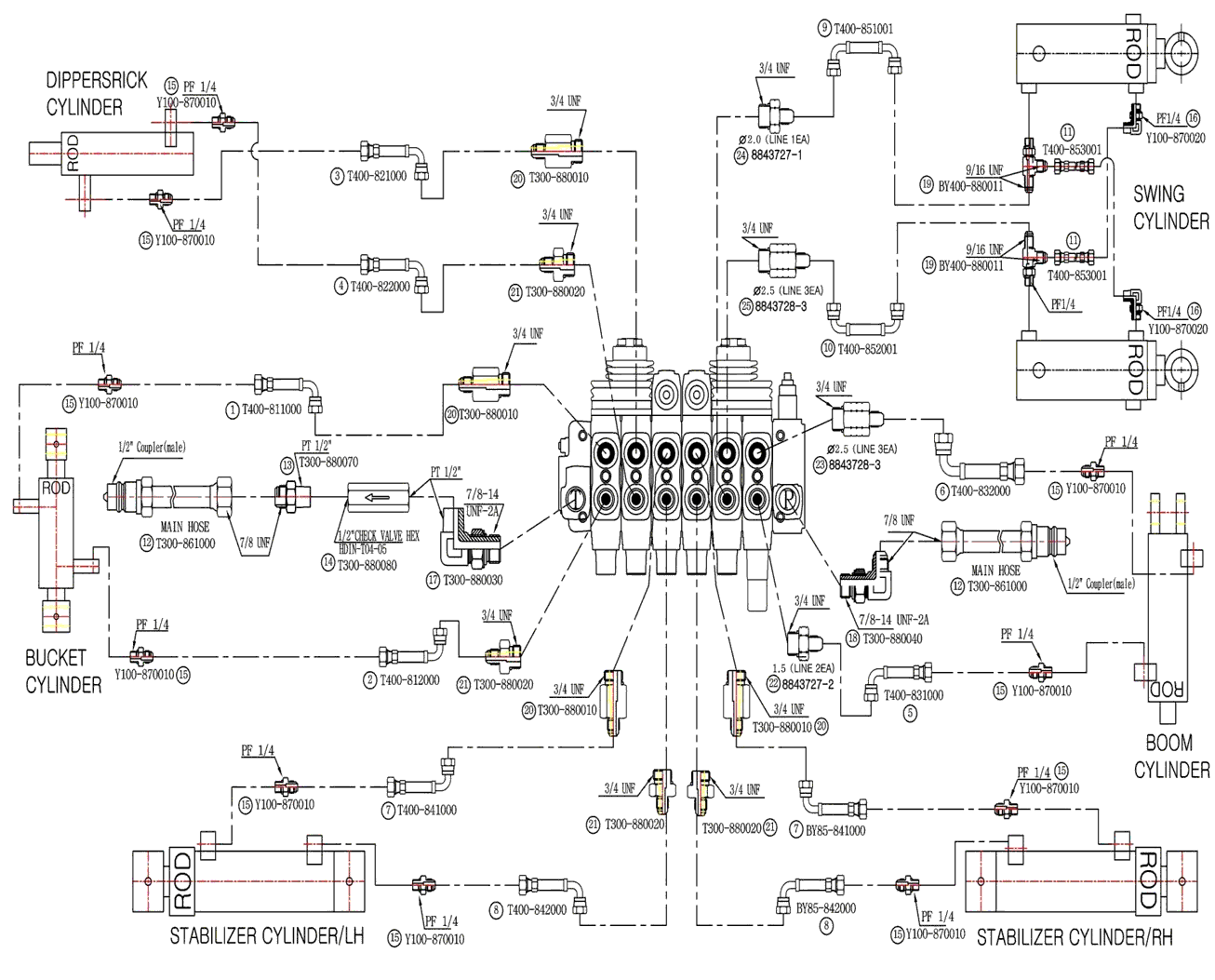 TYM BY85 HOSE FITTING ASSEMBLY SCHEMATICS