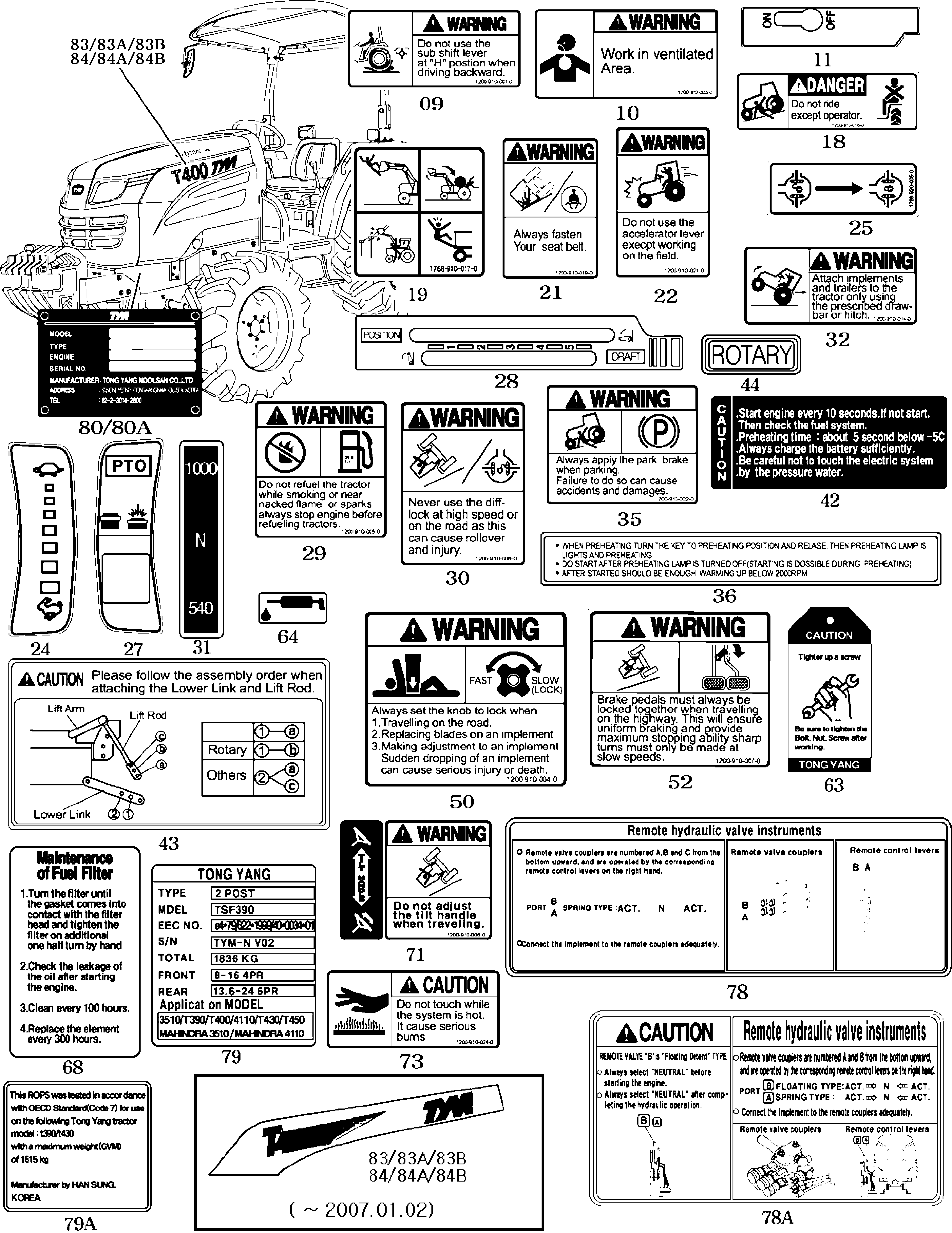 TYM T400NC LABEL SCHEMATICS